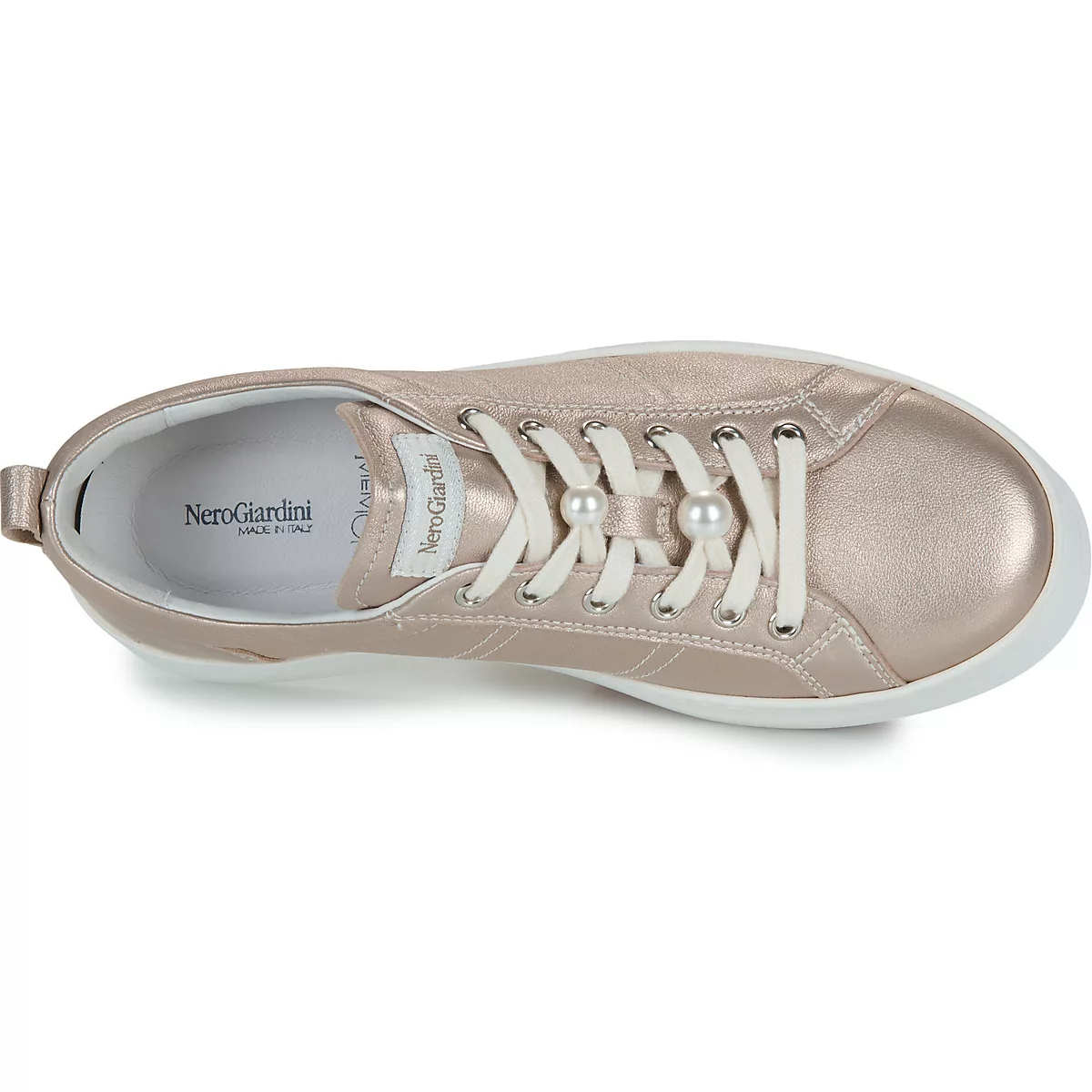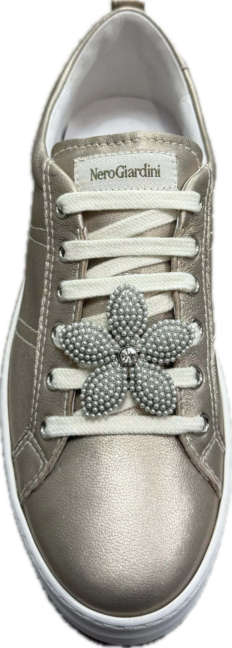 Apportez une touche tendance et élégante à vos tenues avec ces baskets dorées à plateforme, à la fois modernes et confortables. Entièrement conçues en cuir doré, elles offrent une qualité premium et une excellente tenue au quotidien. La semelle plateforme apporte de la hauteur tout en garantissant un confort optimal. Les gros bijoux sur les lacets ajoutent une note chic et originale, idéale pour sublimer un look casual ou plus habillé. Ces baskets NeroGiardini tout cuir allient style, féminité et modernité, parfaites pour celles qui recherchent une chaussure tendance sans compromis sur le confort.