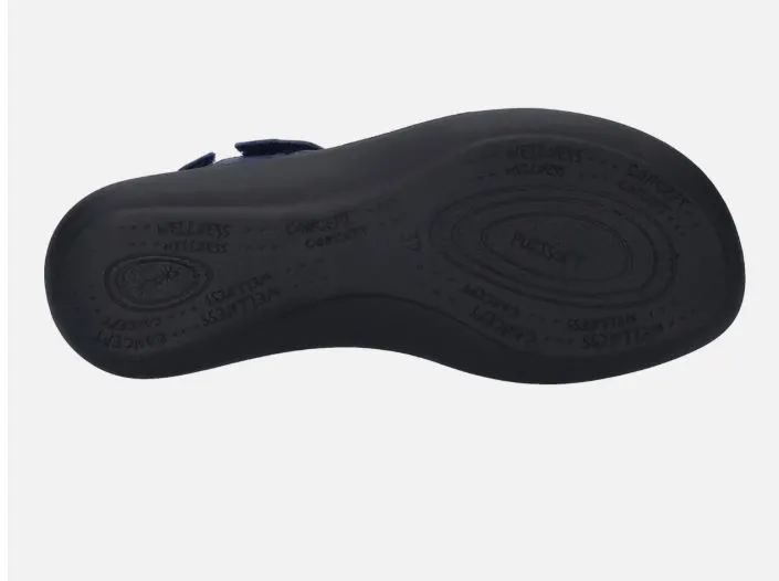 Sandales bleues réglables Josef Seibel. Les personnes qui portent des semelles orthopédiques seront enchantées par ces sandales avec semelles amovibles pour femme de la marque Josef Seibel ! Faciles à porter, confortables, idéales pour les personnes aux pieds larges, ces mules pour femme sont réglables avec 3 velcro.