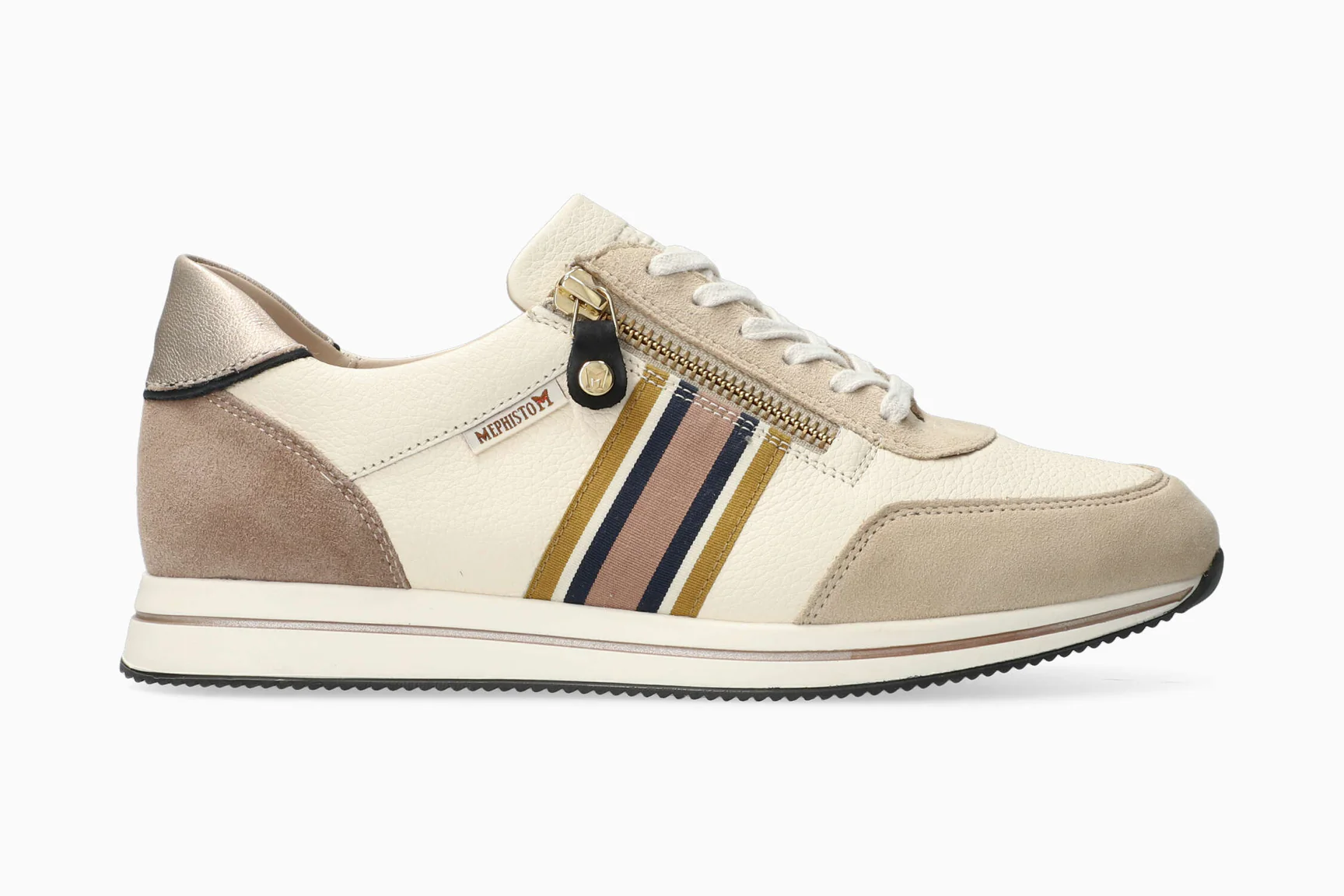 Craquez pour ces Baskets beiges Mephisto ! Cette chaussure au look sport décontracté séduit par son confort incomparable. La semelle intérieure amovible qui intègre la technologie SOFT-AIR et la semelle extérieure dotée du SHOCK-ABSORBER, réduisent les impacts au minimum et garantissent une marche souple et sans fatigue. En plus du laçage, elle est facile à chausser grâce à sa fermeture à glissière latérale. La doublure de cette basket ville Mephisto est en textile pour plus de confort.