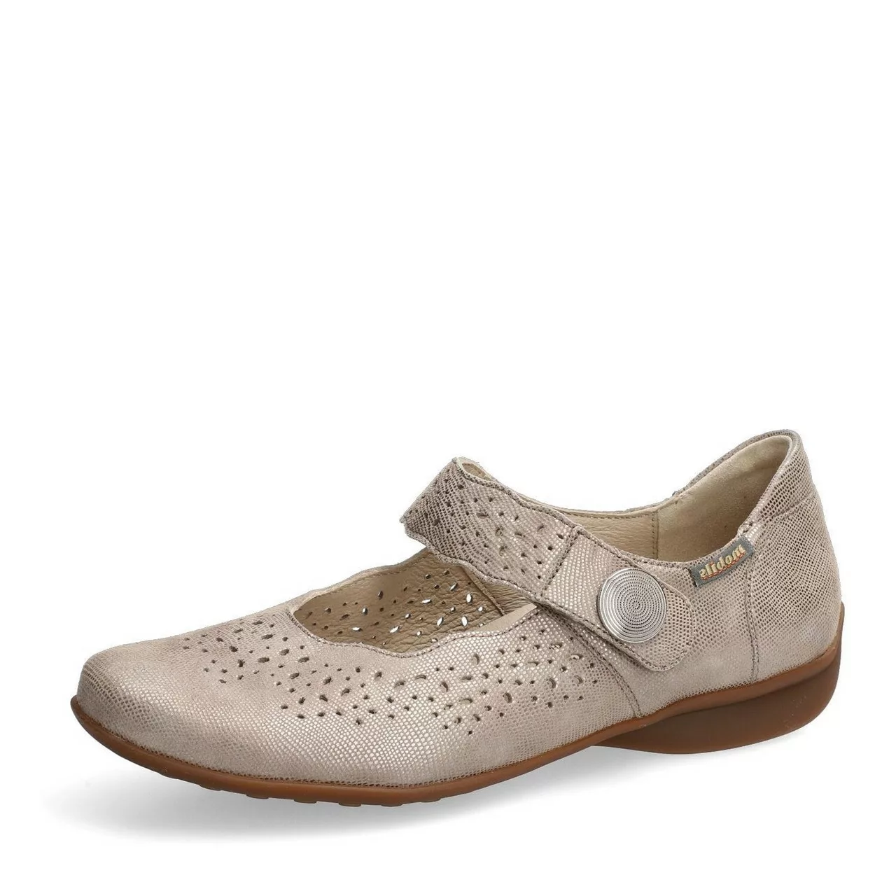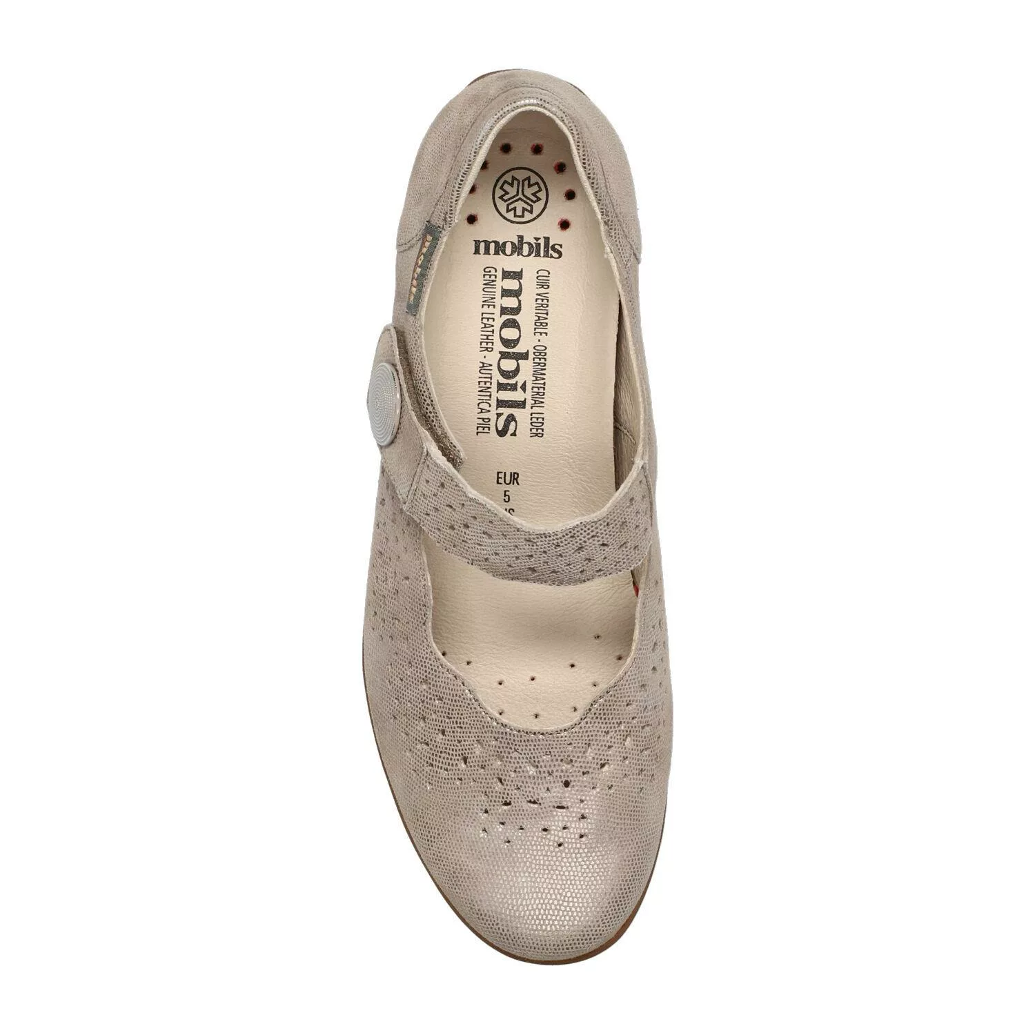 Ces babies beiges Fabienne Mobils séduisent par leur confort incomparable. Cette ballerine perforée à la fois classique et féminine, associée à la souplesse de sa semelle en caoutchouc, reflète une élégance intemporelle. La doublure en cuir assure une hygiène saine du pied. Cette ballerine taupe pour femme est composée de cuir effet métallisé pailleté.