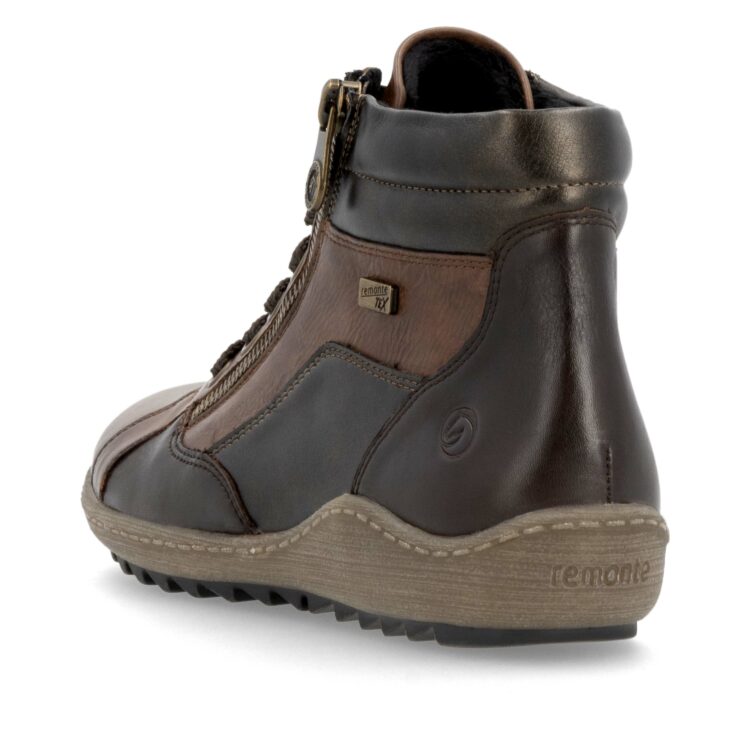 Ces baskets montantes marron de la marque Remonte offrent un maintien et un confort du pied au cours de la marche. Les personnes qui portent des semelles orthopédiques seront enchantées par ces chaussures avec semelles amovibles de la marque Remonte ! Ces baskets montantes sont imperméables. Par souci pratique ce modèle intègre à la fois un laçage à l’avant et une fermeture éclair sur le côté.