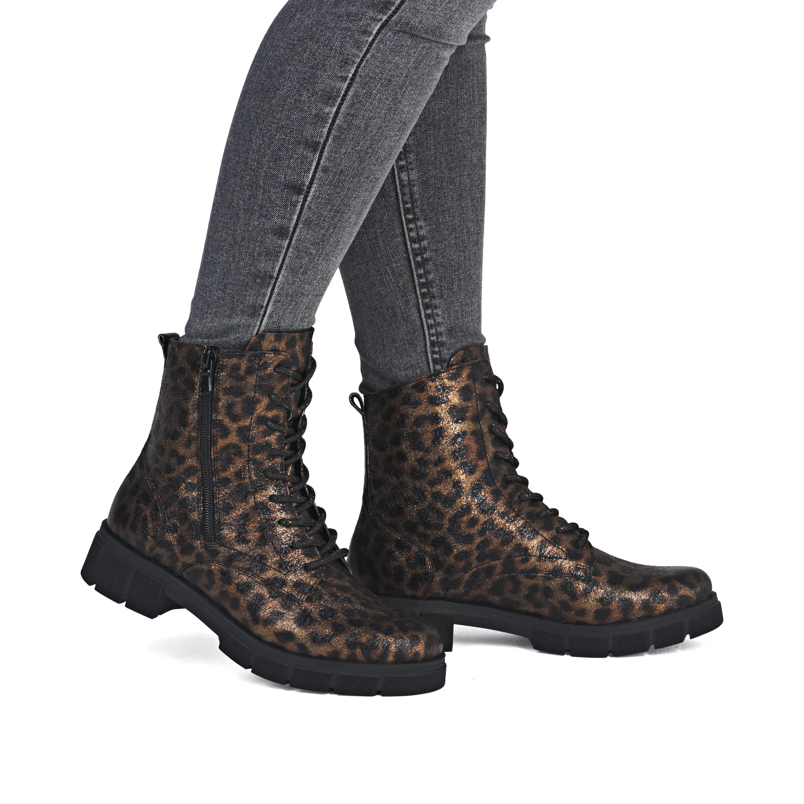Ajoutez une touche sauvage à votre look avec les bottines léopard à lacets Remonte. Le motif léopard se marie parfaitement avec une variété de tenues, que vous optiez pour un look casual avec un jean ou une tenue plus chic avec une robe. Les personnes qui portent des semelles orthopédiques seront enchantées par ces bottines avec semelles amovibles de la marque Remonte ! Par souci pratique ce modèle intègre à la fois un laçage à l’avant et une fermeture éclair sur le côté.