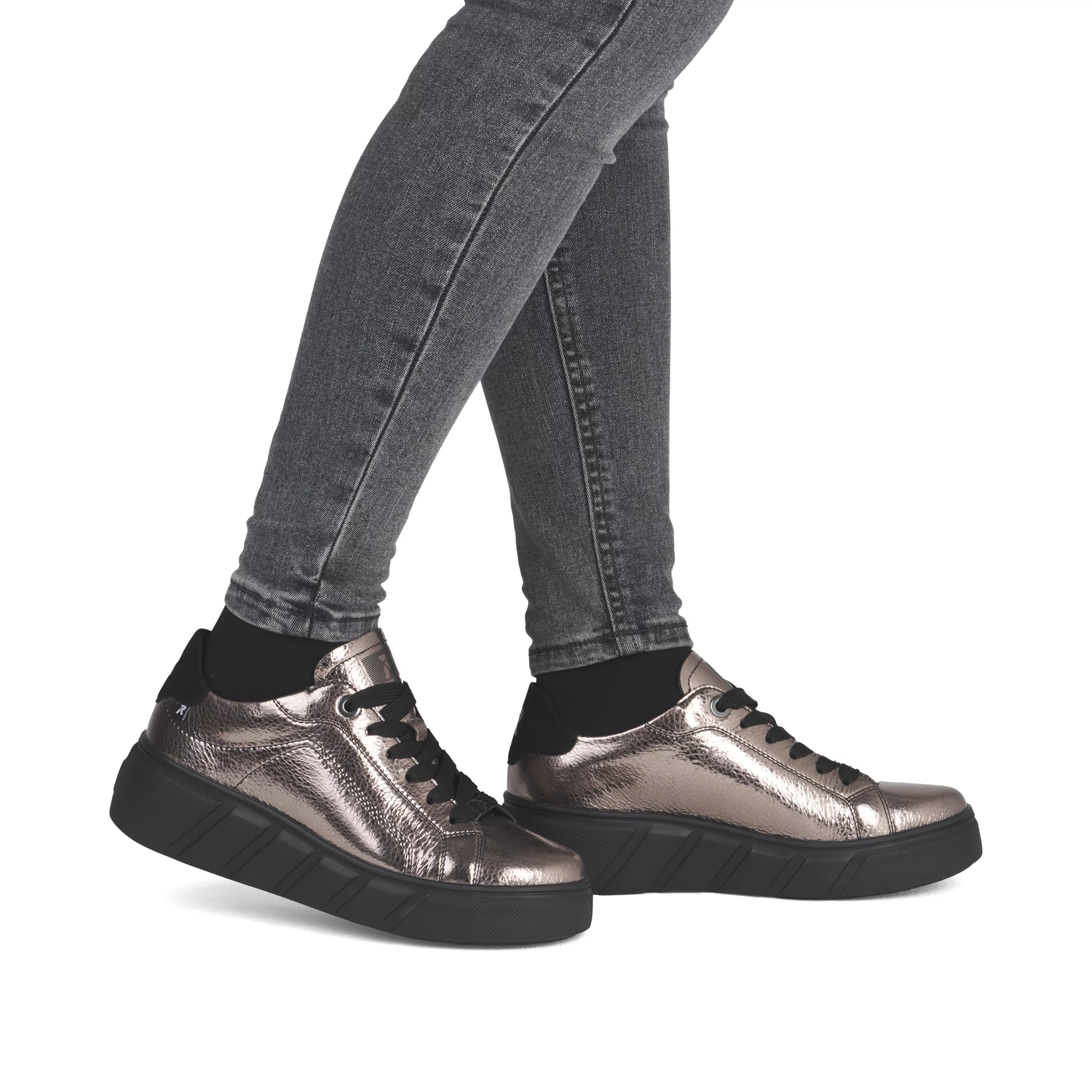Adoptez un look futuriste et tendance avec les baskets argentées à plateforme Rieker. Ces baskets basses pour femme combinent style et confort grâce à leur design moderne et leurs matériaux de haute qualité. Que vous cherchiez une paire de baskets pour vos sorties quotidiennes ou pour compléter votre garde-robe avec une touche métallique, les baskets W2601-91 argentées sont faites pour vous.