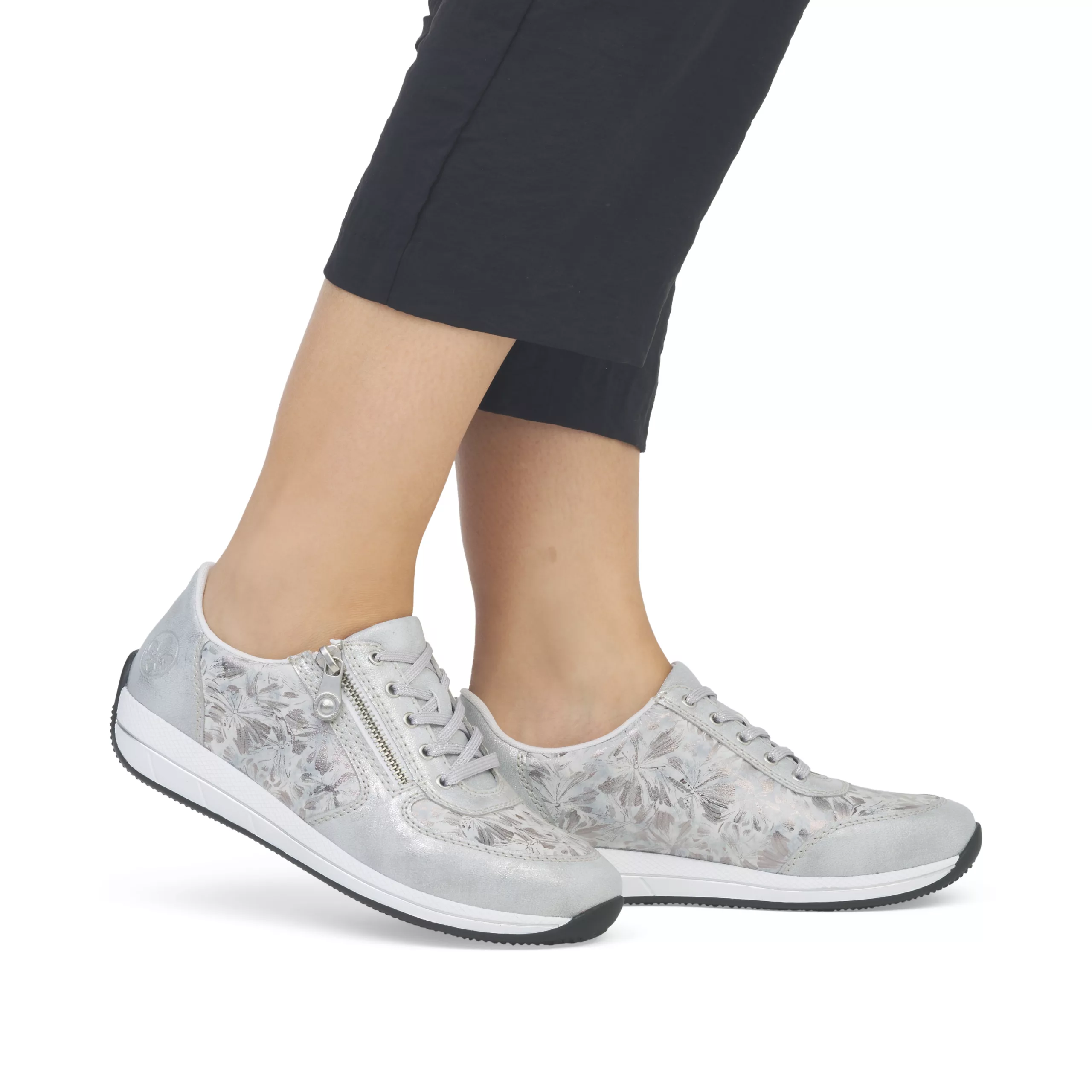 Ces baskets argentées larges pour femme de la marque Rieker sont idéales pour allier style, confort et légèreté au quotidien. Conçues pour les pieds larges, ces baskets offrent un chaussant confortable et un excellent maintien, sans sensation de compression. Leur semelle fine apporte une allure élégante et discrète, loin des baskets trop sportives. Grâce à leur finition argentée, ces chaussures ajoutent une touche moderne et lumineuse à vos tenues, tout en restant faciles à assortir avec un jean, un pantalon ou une robe. Fidèles à la qualité Rieker , ces baskets pour pour femme assurent un confort durable, parfait pour une utilisation quotidienne, en ville ou au travail. Un modèle polyvalent, pensé pour celles qui recherchent des baskets larges confortables et féminines.