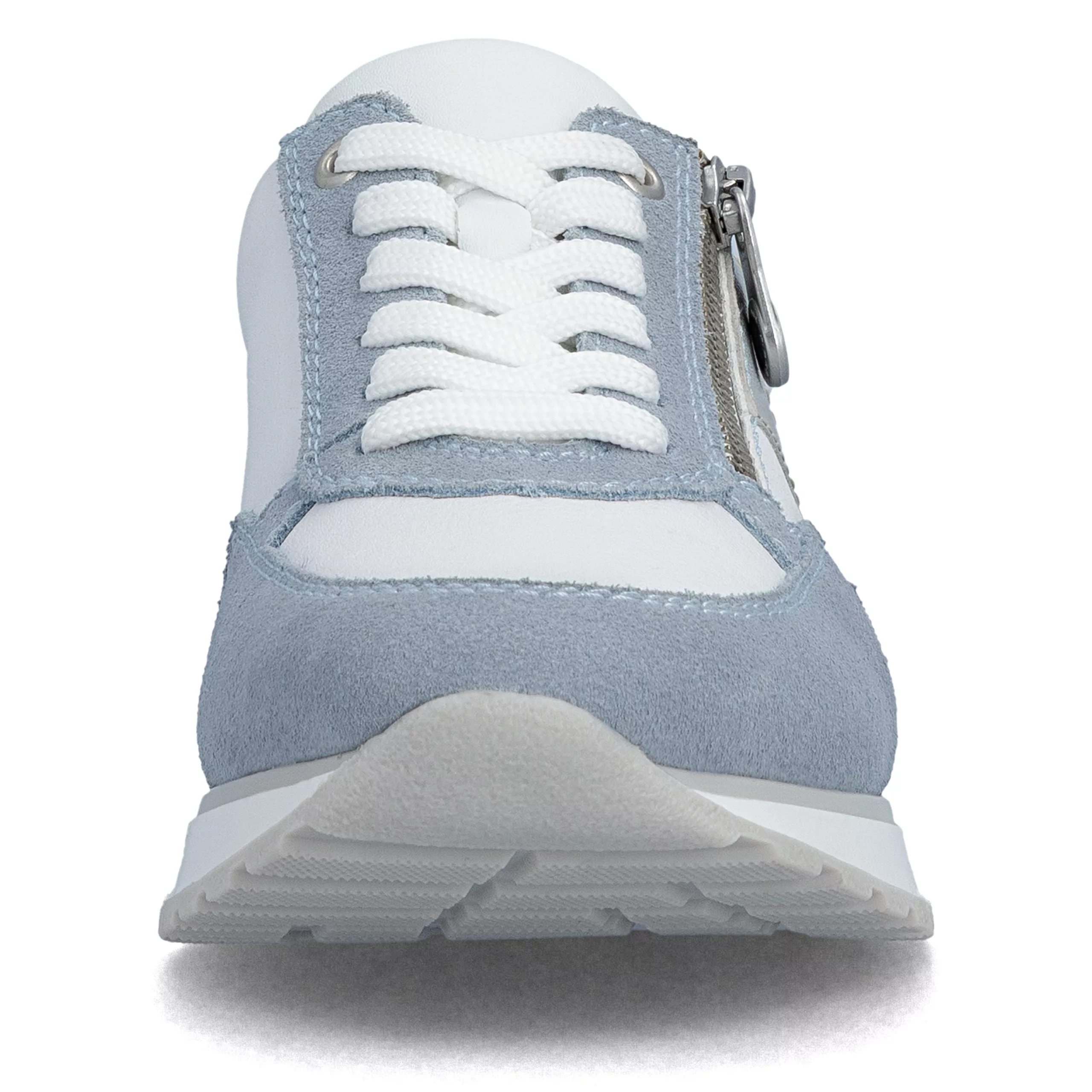 Les baskets larges blanches et bleues Rieker extra larges sont idéales pour celles et ceux qui recherchent un confort optimal sans compromis sur le style. Conçues pour offrir plus d’aisance, elles s’adaptent parfaitement aux pieds larges tout en assurant un excellent maintien. Grâce à leur chaussant extra large, ces baskets Rieker réduisent les points de pression et garantissent une sensation de bien-être tout au long de la journée. Le design bleu et blanc, à la fois moderne et intemporel, s’accorde facilement avec une tenue casual ou plus sportive. Les personnes qui portent des semelles orthopédiques seront enchantées par ces chaussures avec semelles amovibles Rieker ! Par souci pratique ce modèle intègre à la fois un laçage à l’avant et une fermeture éclair sur le côté.