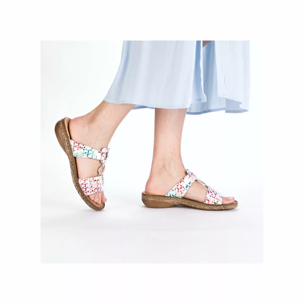 Ces mules réglables multicolores Rieker vous chausseront avec souplesse, confort et légèreté tout l’été et feront vite partie de votre quotidien ! Grâce à leurs deux brides velcro, les mules pour femme 628P9-90 de la marque Rieker offrent un bon ajustement de vos pieds. Vous apprécierez leurs semelles intérieures matelassées qui vous assurent un grand confort de marche. Munies d’une semelle extérieure antidérapante, ces mules pour femme se rendront vite indispensables !