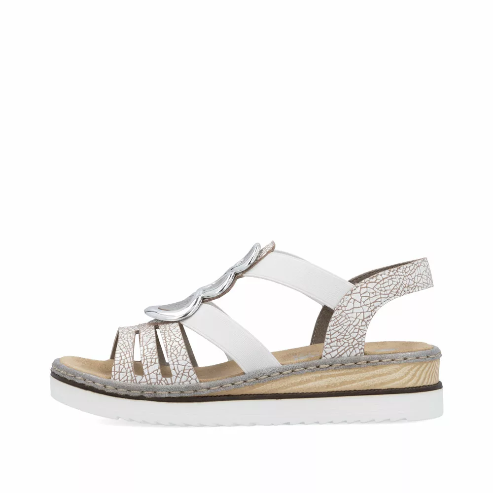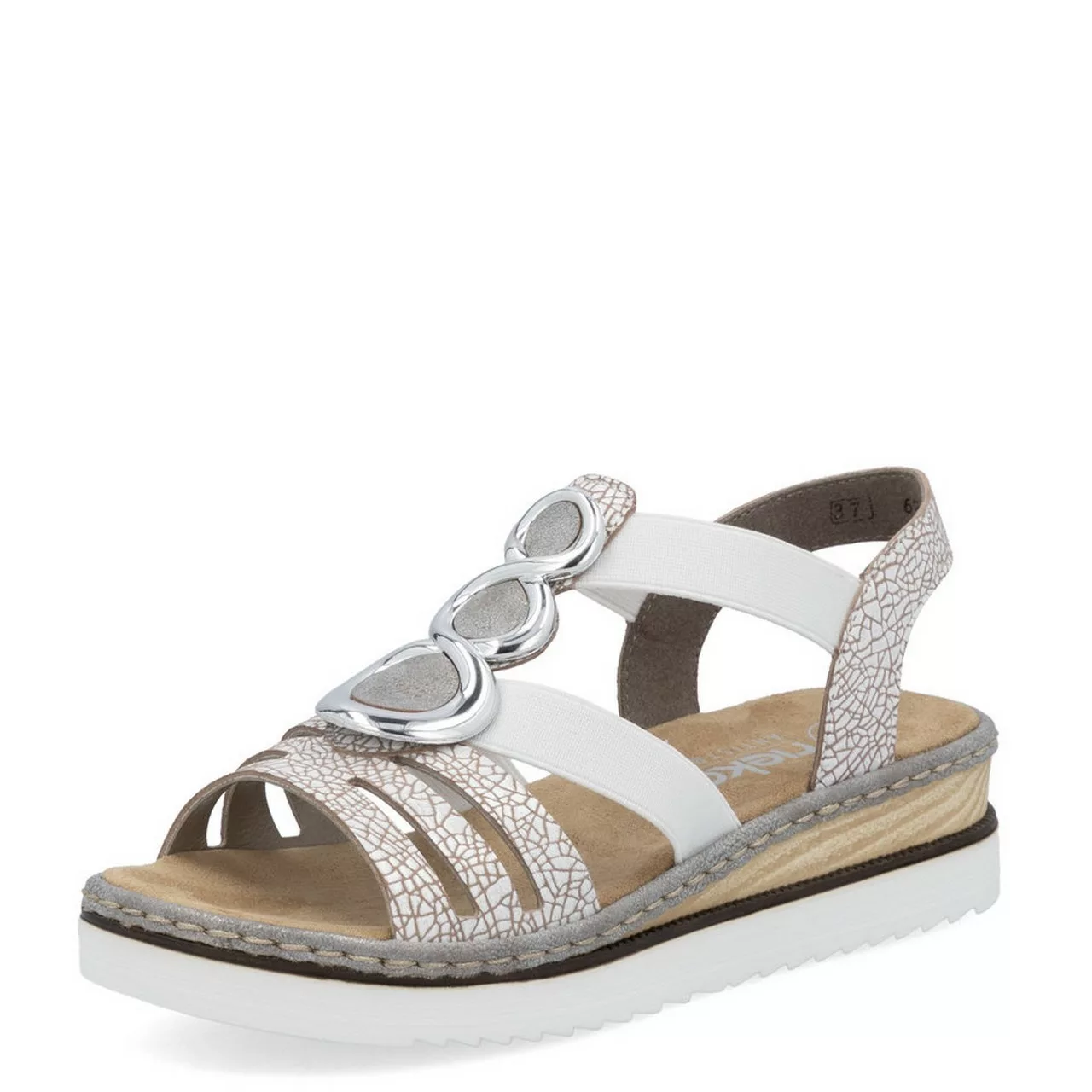Ces sandales blanches élastiquées Rieker vous chausseront confortablement. On adore les sandales 679L4-80, un modèle qui offre un style actuel et féminin dont vous ne pourrez plus vous en séparer ! Faciles à porter au quotidien, ces jolies sandales femme se chaussent rapidement grâce à leur élastiques d’aisance sur les cotés.