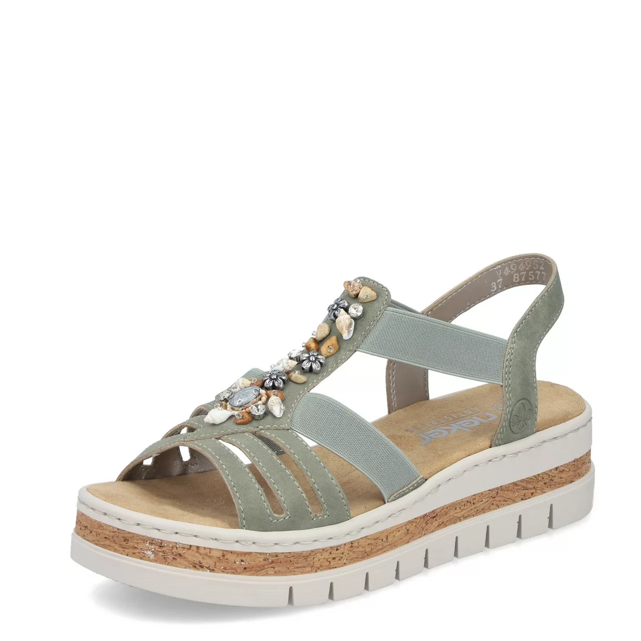 Optez pour le confort au quotidien avec ces sandales sauge élastiquées de la marque Rieker. Les brides élastiquées de cette sandale assurent un enfilage simple tout en maintenant bien le pied. La semelle est particulièrement agréable, idéale pour marcher toute la journée avec légèreté. À l’avant de jolies perles en forme de coquillage apportent une touche estivale à la sandale. Pratiques et confortables, ces sandales Rieker sont parfaites pour celles qui recherchent une chaussure facile à porter au quotidien, avec un bon maintien et un vrai confort de marche.
