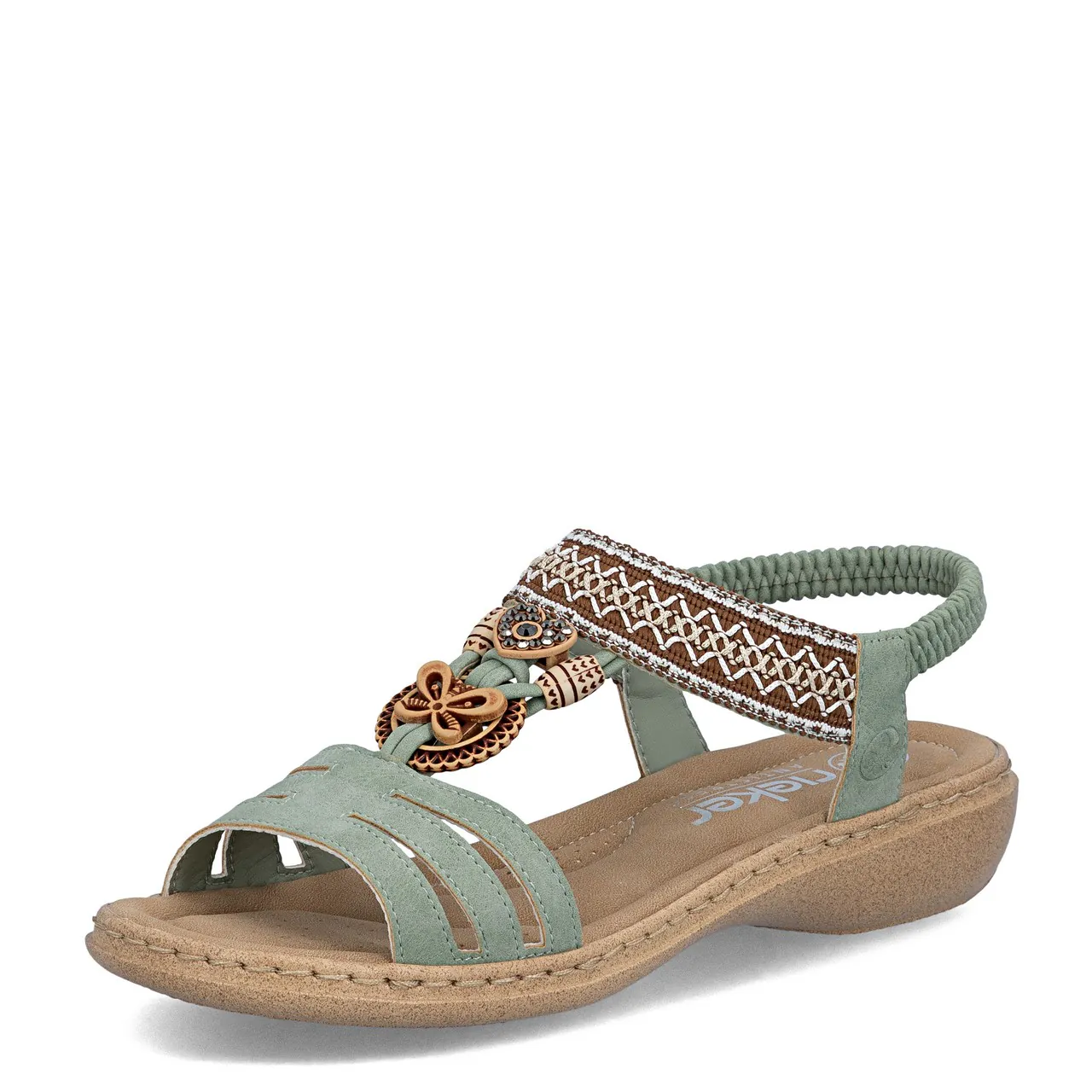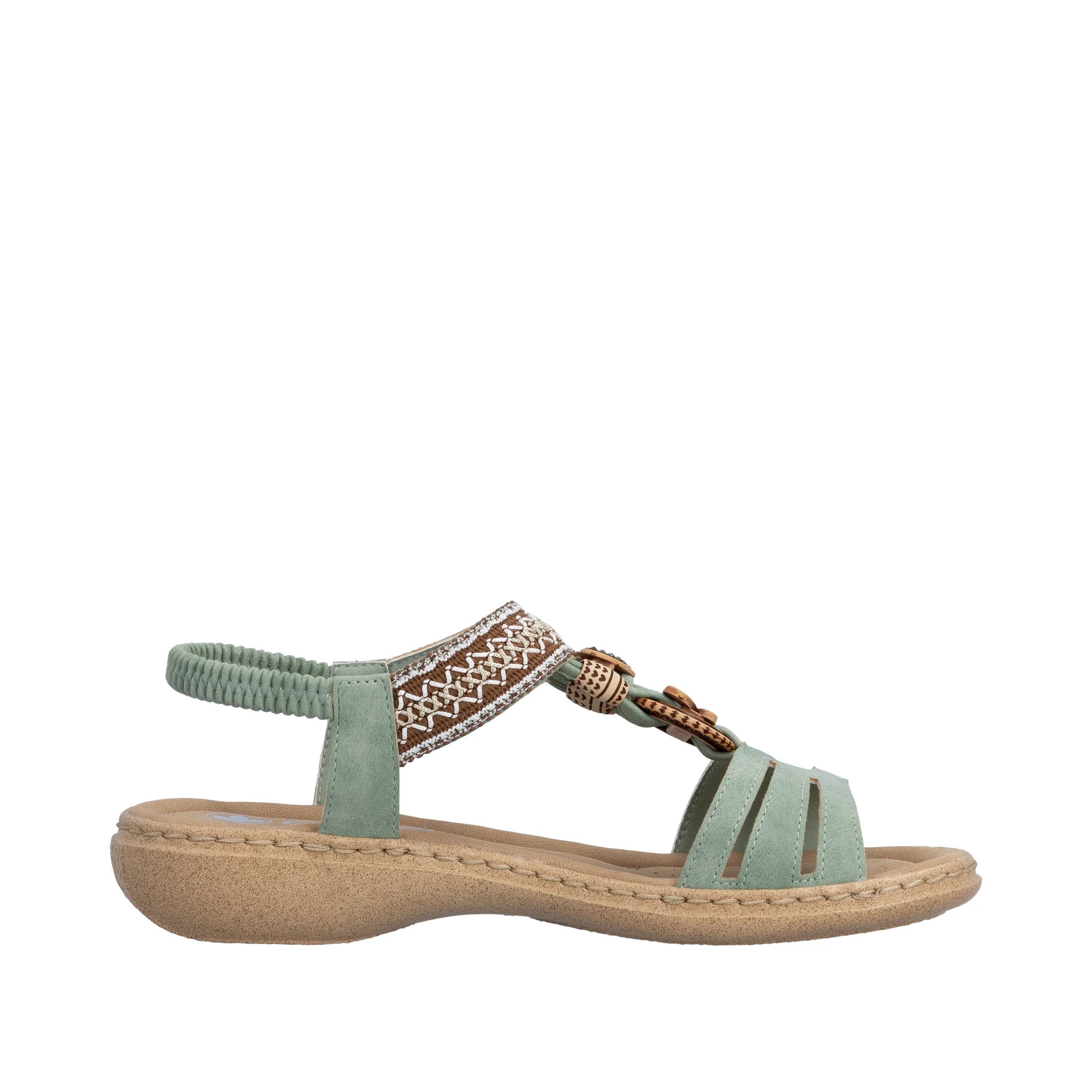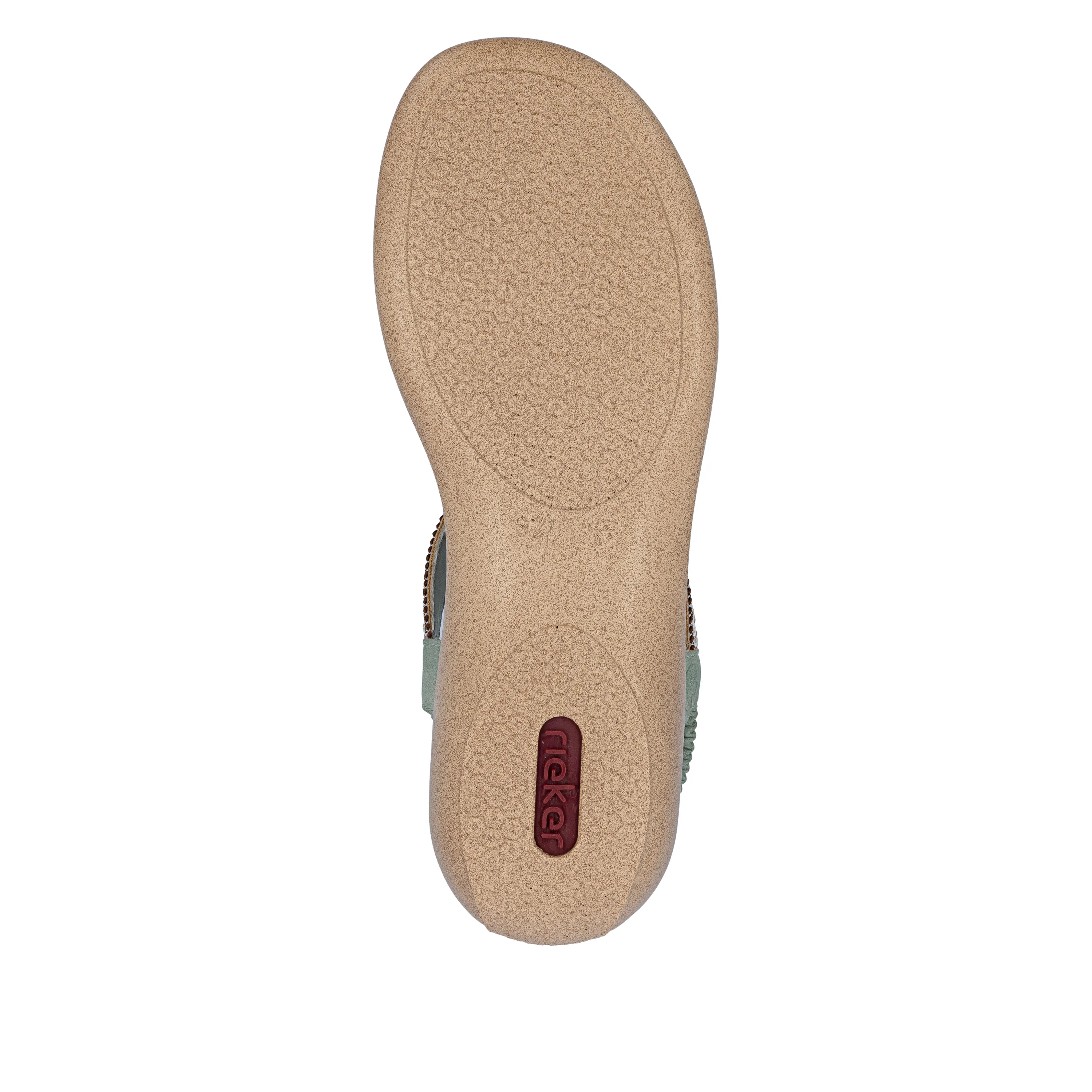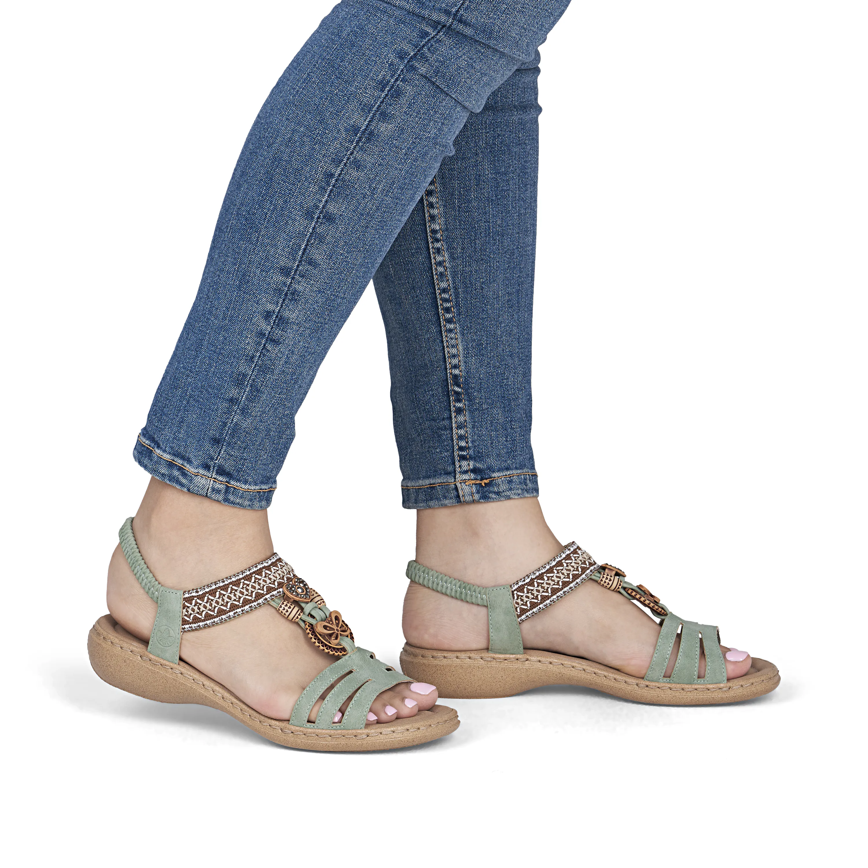 Ces sandales sauge Rieker se distinguent par leur teinte douce et facile à porter au quotidien. À l’avant, une bride décorée de motifs tressés et de petits ornements qui ajoutent une touche travaillée qui donne du caractère à la chaussure. La bride arrière élastiquée permet d’enfiler la sandale facilement tout en offrant un maintien agréable. La semelle de cette sandale Rieker est souple et confortable, idéale pour marcher tout au long de la journée. Polyvalente et agréable à porter, cette sandale sauge pour femme s’accorde facilement avec une tenue estivale, que ce soit une robe, un pantalon léger ou un short. Une sandale pratique qui privilégie le confort sans négliger les détails.